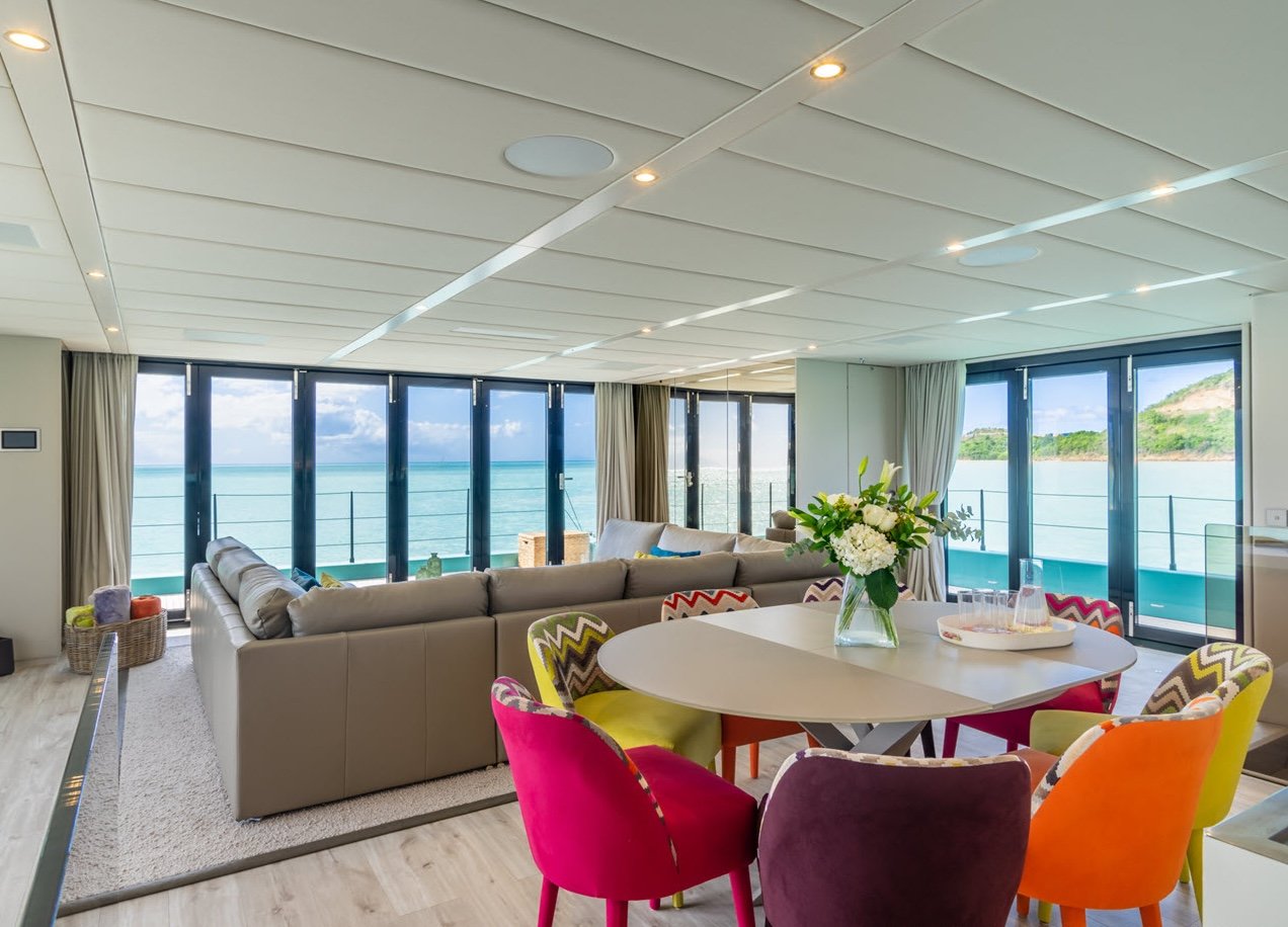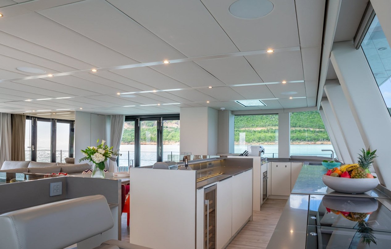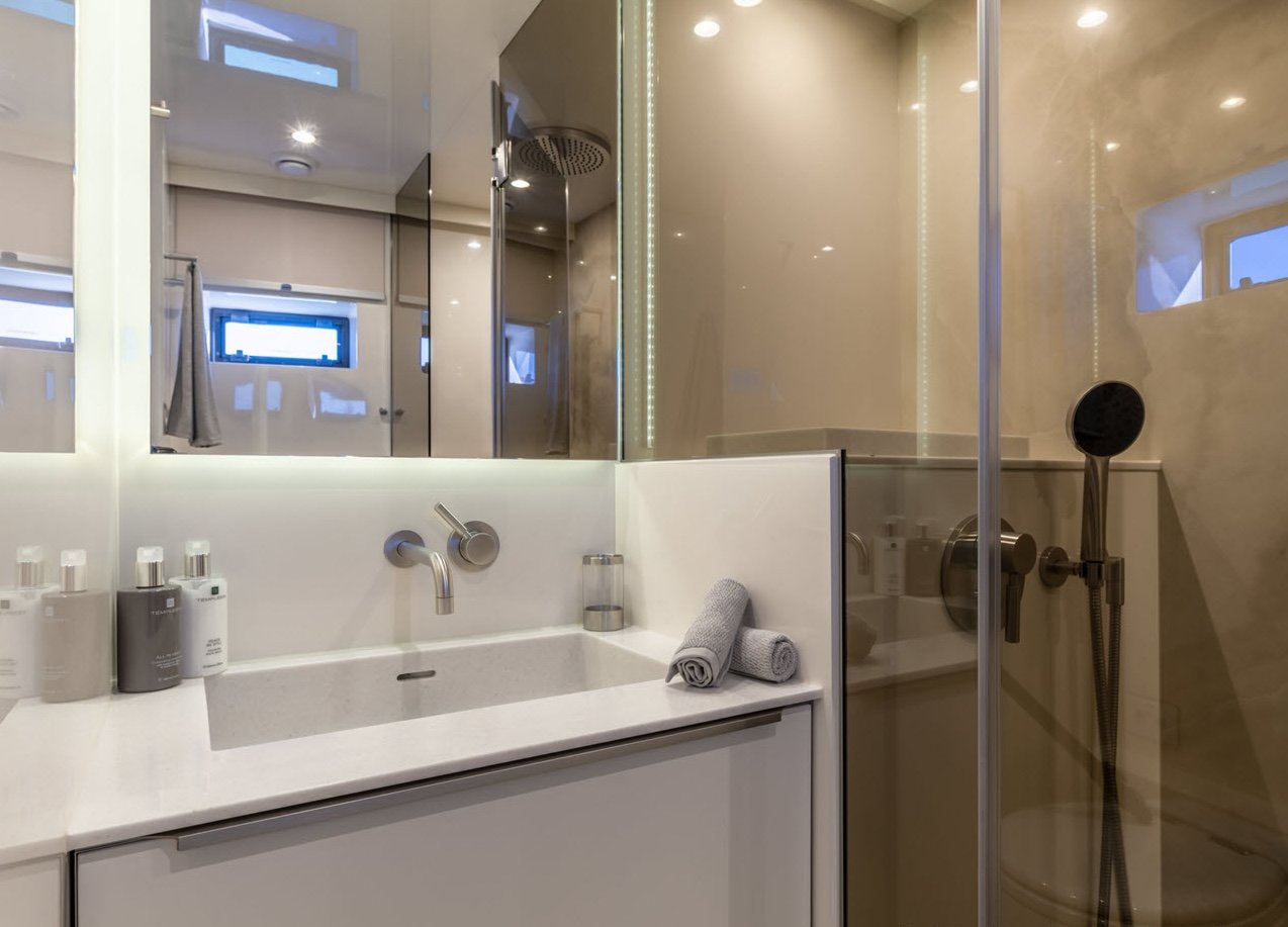 This luxurious catamaran is designed for ultimate comfort, featuring four spacious cabins, including indulgent master suites and inviting guest bedrooms, each equipped with elegant quartz-finished bathrooms. It comfortably sleeps 8 guests, offering private sanctuaries for families and friends.