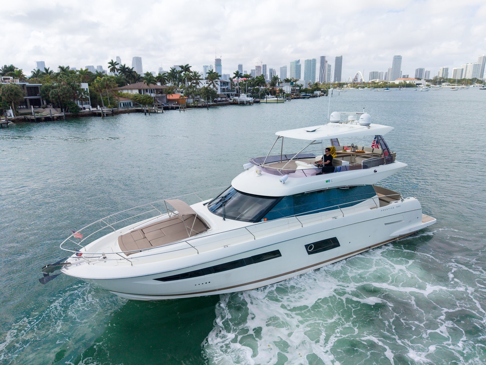 Commissioned by the United States Coast Guard (USCG), the Prestige 550 offers an added layer of trust and professionalism, making it an exceptional choice for guests seeking a well-balanced, comfortable, and reliable charter experience in Miami and South Florida.