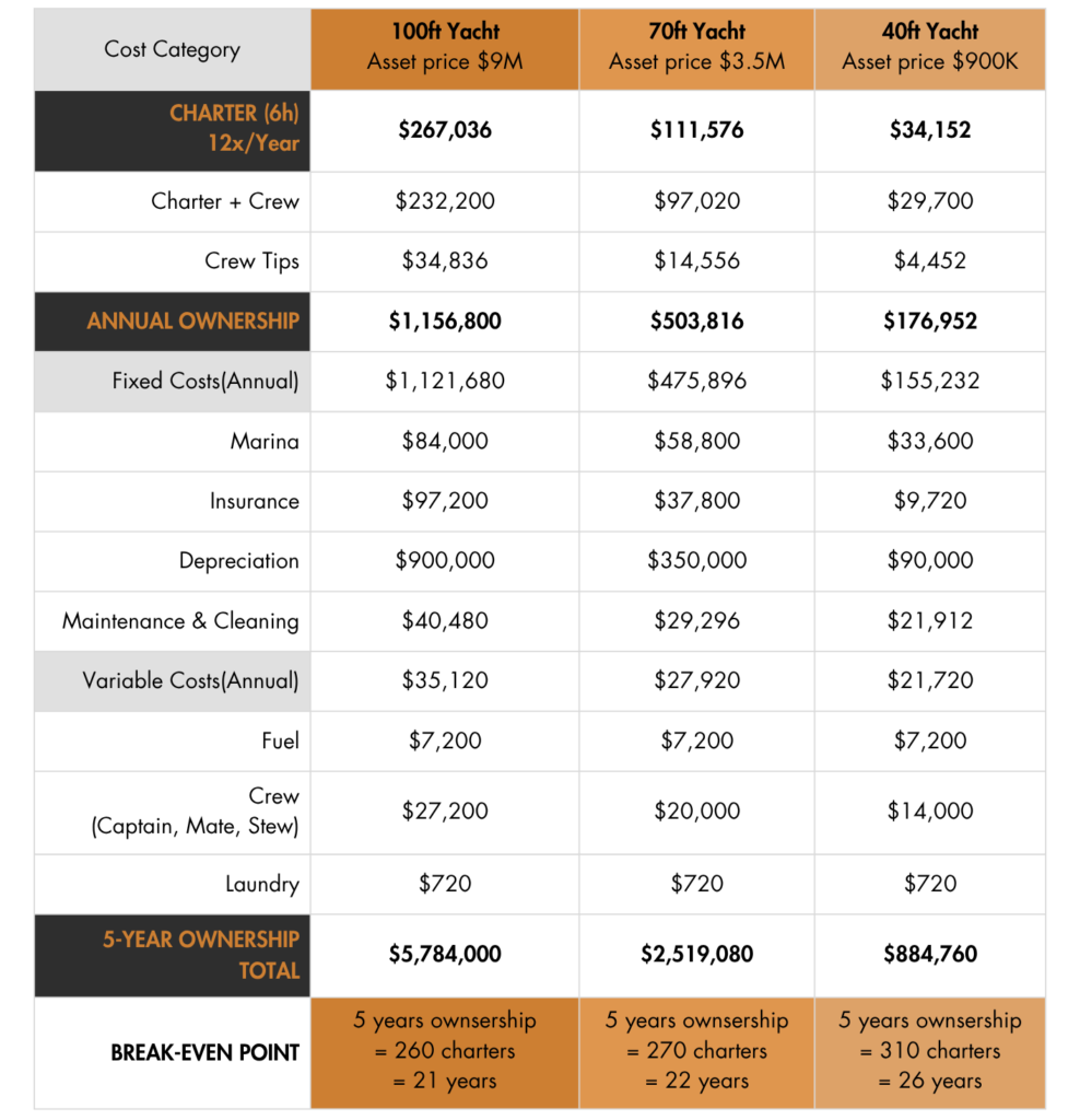 Other wealthy customers own a yacht in their primary home country, but when spending the summer or the winter in their second homes, chartering is a better option than owning.